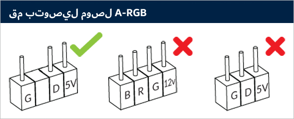قم بتوصيله بموصل A-RGB ثلاثي السنون الموجود على اللوحة الأم