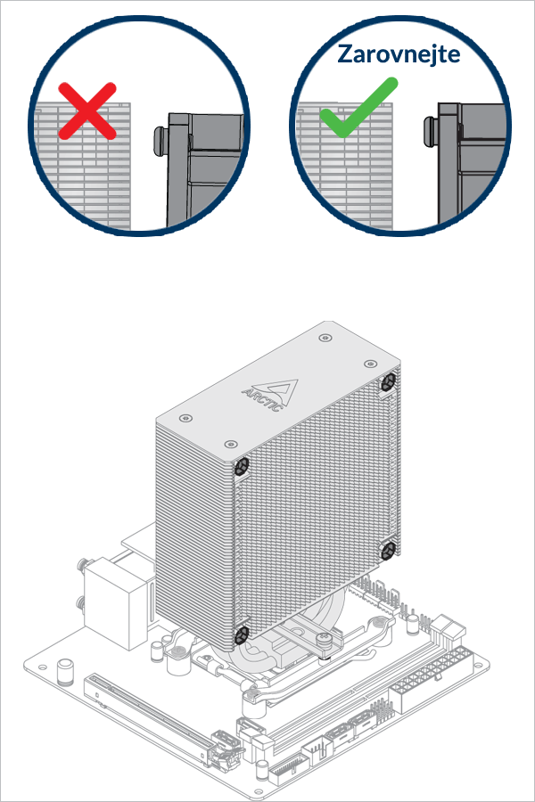 Před rovnoměrným utažením 4 šroubů křížem je volně zašroubujte o 2 otáčky, aby nedošlo k poškození procesoru.