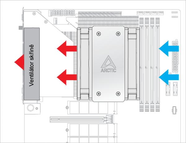 Ventilátory můžete otočit, abyste usnadnili správu kabelů