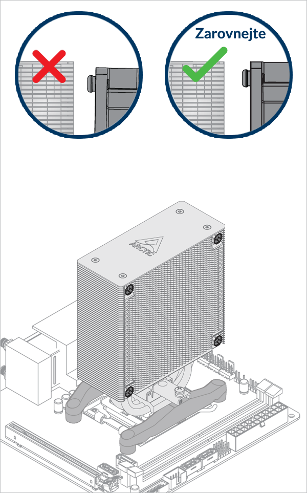 Před rovnoměrným utažením 4 šroubů křížem je volně zašroubujte o 2 otáčky, aby nedošlo k poškození procesoru.