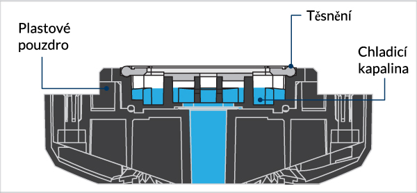 Zkontrolujte, že mezi chladicí deskou a plastovým pouzdrem není žádná mezera.
