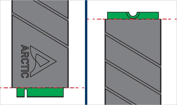 Ensure the SSD is correctly oriented *, place the heatsink on its top surface, and align the heatsink edges with the SSD connector edge.