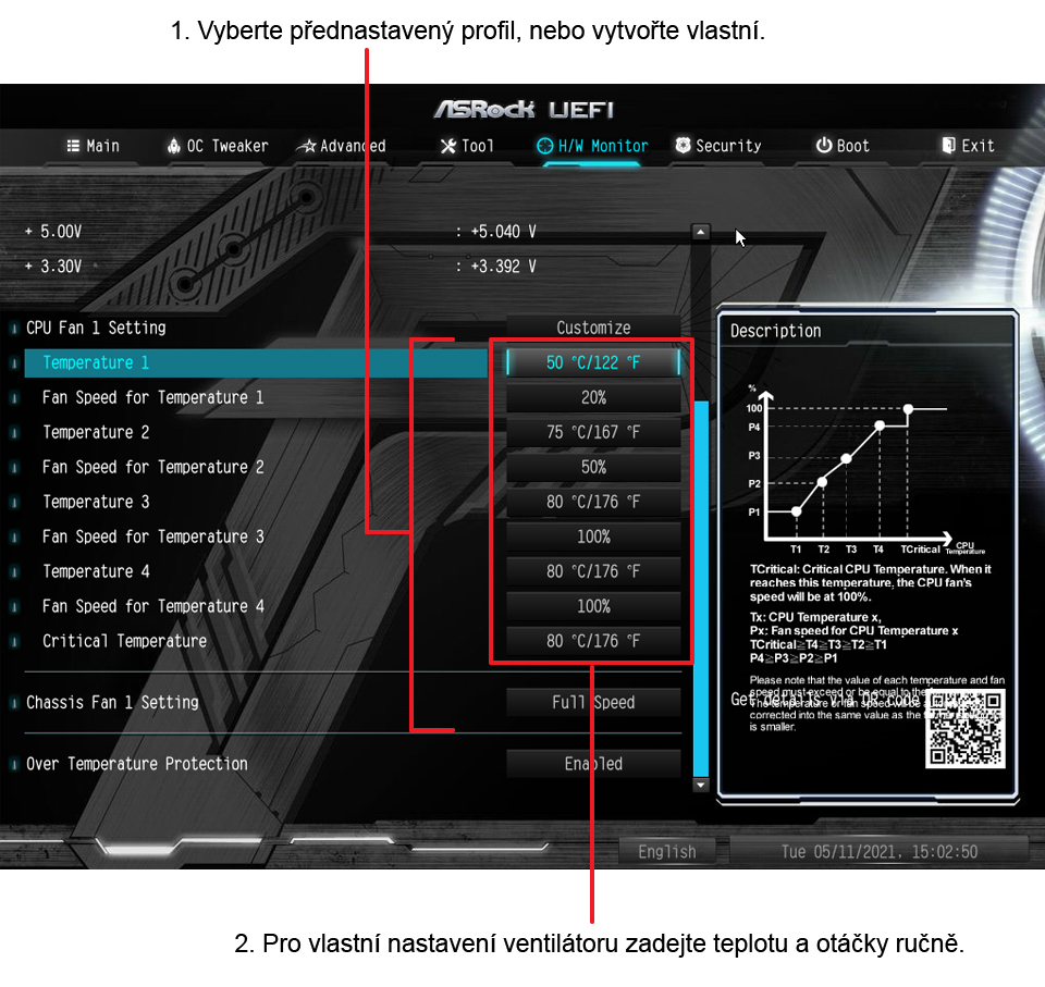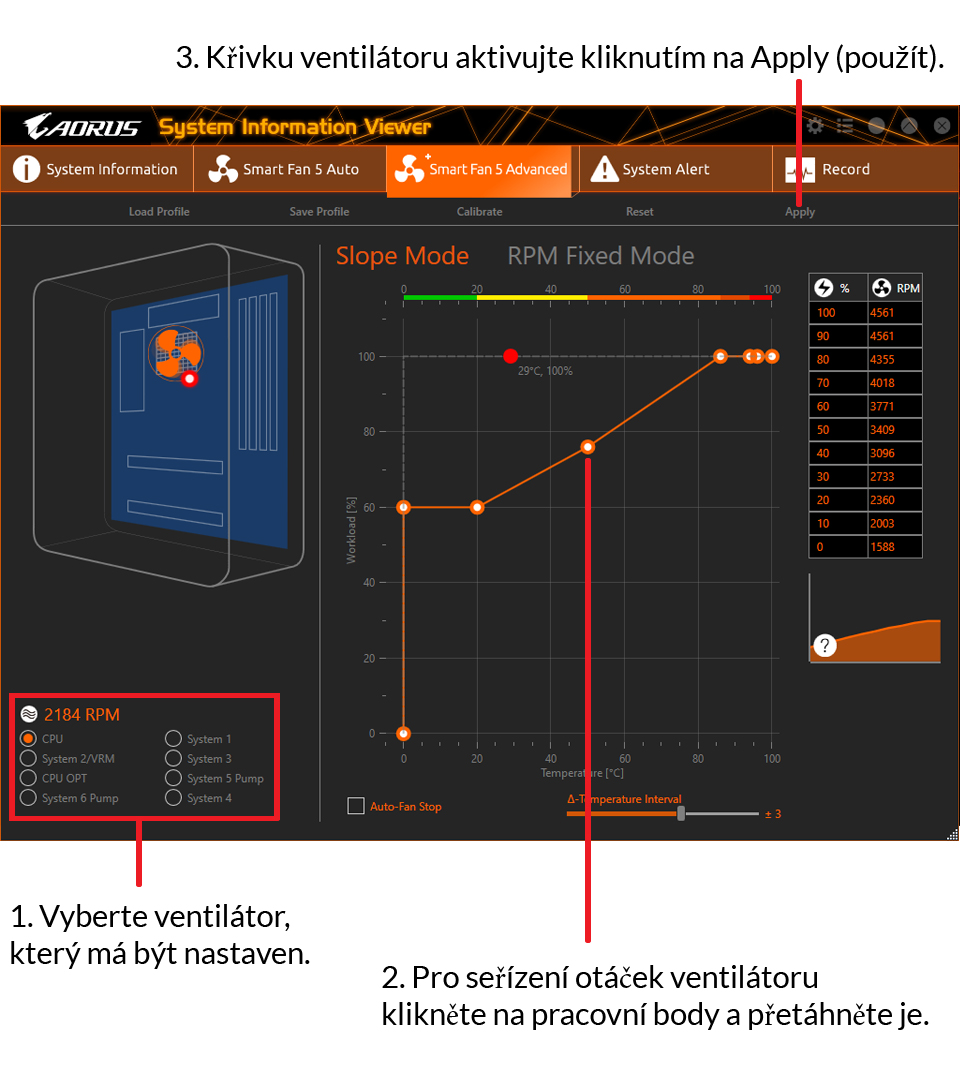 Použijte funkci kopírovat a vložit pro zkopírování křivky ventilátoru.