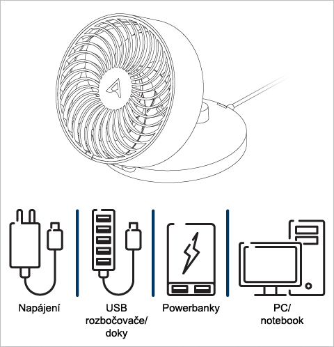 Během provozu udržujte vlasy, oblečení a volné předměty mimo dosah ventilátoru.