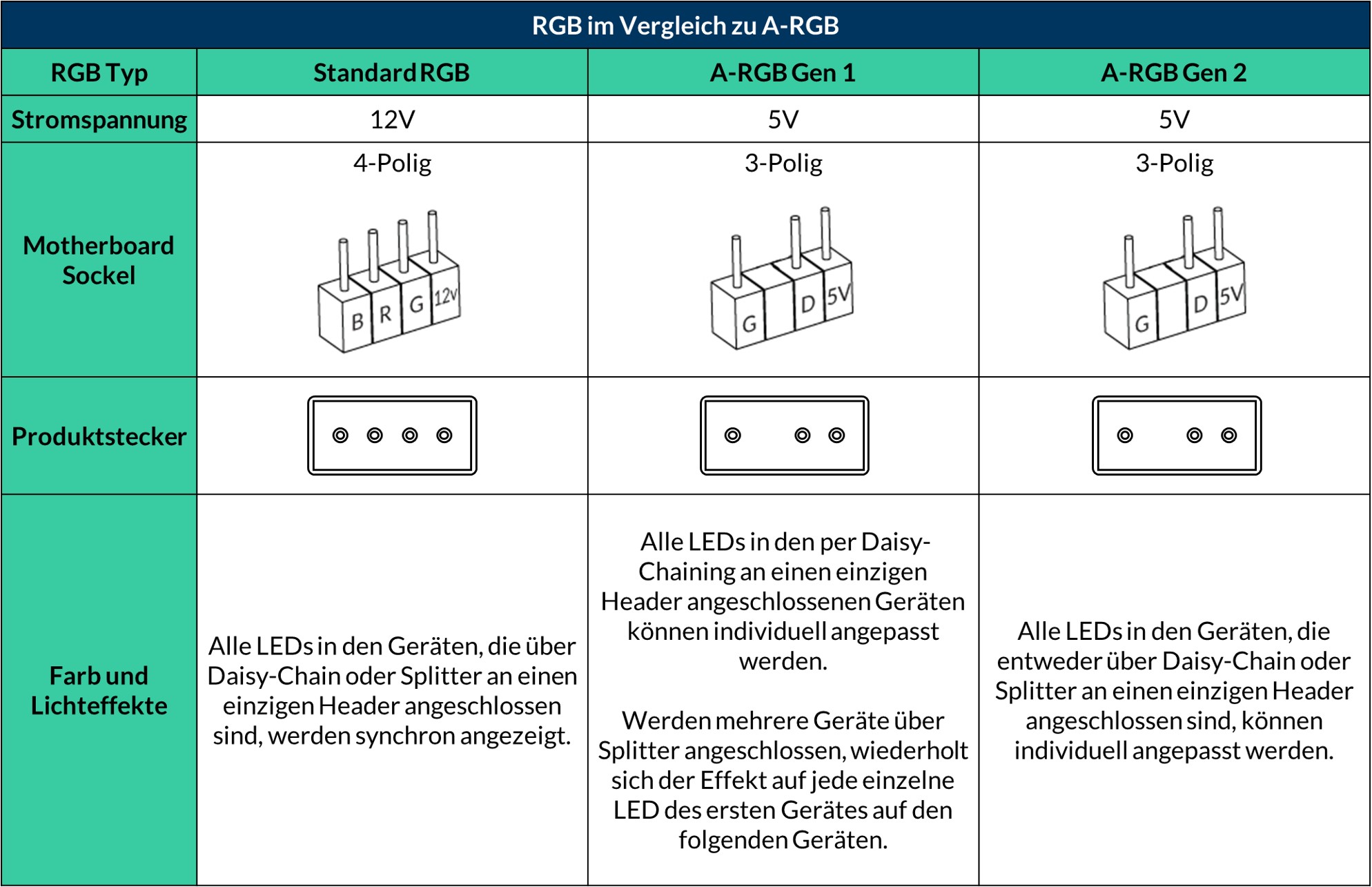 Diese Seite dient als Leitfaden zur Maximierung des Potenzials Ihrer A-RGB Gen 2-Produkte, um die Ästhetik Ihres Setups zu verändern und eine einzigartige Atmosphäre zu schaffen. In Kombination mit der richtigen Hardware und Software ist A-RGB Gen 2 im Vergleich zu RGB und A-RGB Gen 1 in nahezu jeder Hinsicht vielseitiger, da es absolute Kontrolle über jede einzelne LED bietet.