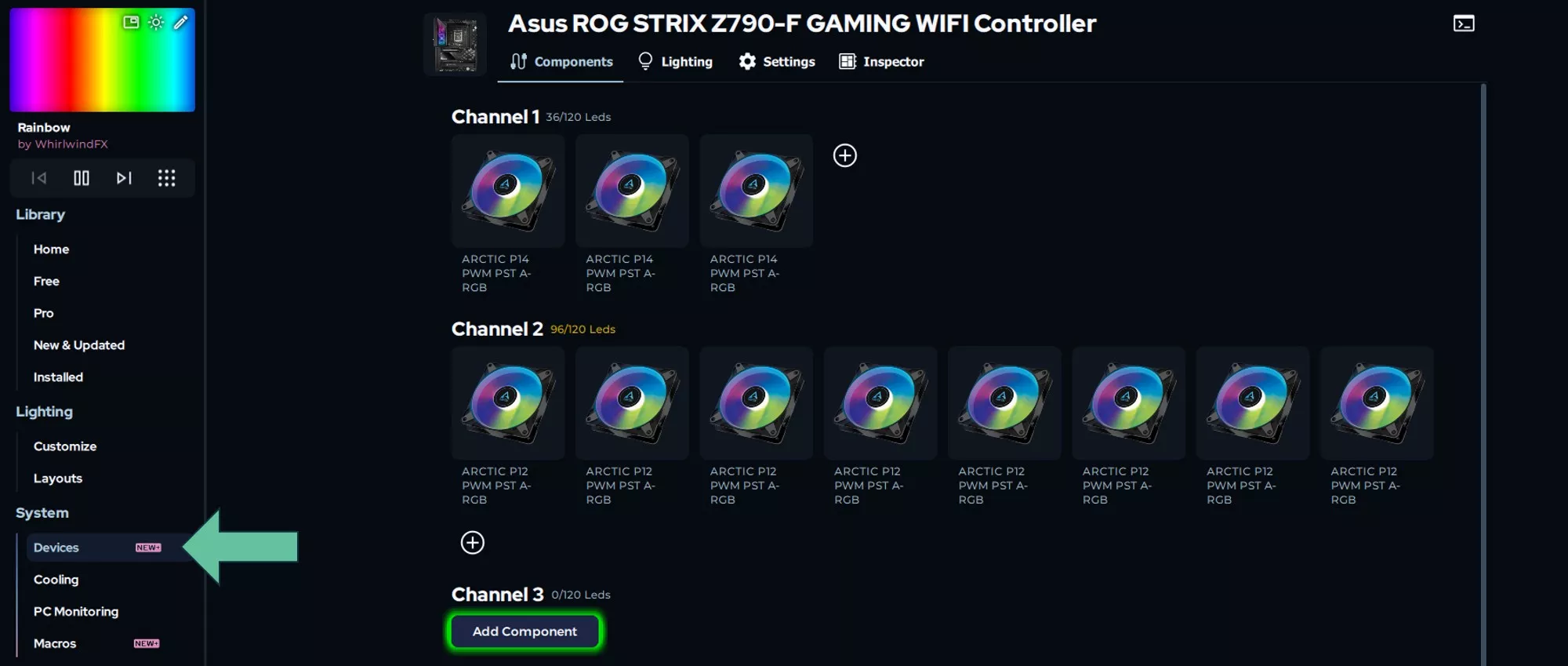 Verwenden Sie das Sortier-Dropdown-Menü und die Suchleiste in SignalRGB, um nach ARCTICs A-RGB-Produkten zu suchen!