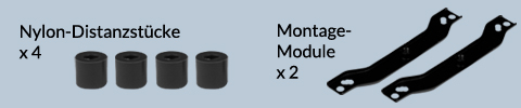 Drehen Sie langsam abwechselnd die linke und die rechte Schraube, um sicherzustellen, dass beide Schrauben in den Gewinden an den Befestigungsmodulen greifen. Ziehen Sie die Schrauben anschließend fest.