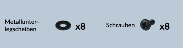 Eine dicke Unterlage (z. B. den inneren Verpackungskarton) auf eine ebene, waagerechte Fläche unter die Sockel Backplate legen, um diese abzustützen.