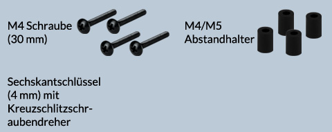 Falls M5-Schrauben benötigt werden, wenden Sie sich bitte an unseren Kundendienst, um diese kostenlos zu erhalten.