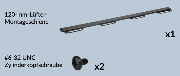Installiere die Lüfter-Montageschiene vor dem Einbau von 240- oder 360-mm-Radiatoren.