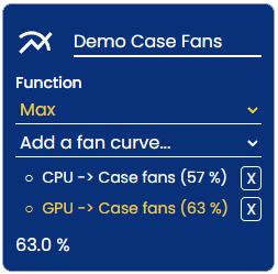 • • Choose function between Max and Average. Select fan curves: Add any existing fan curve to the mix.