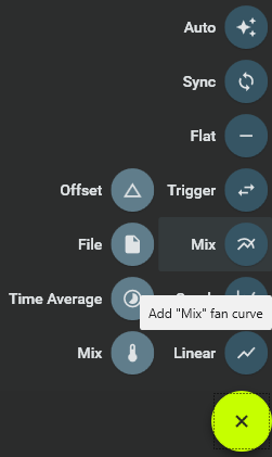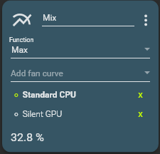 The mix function is an advance feature of the fan control. It combines multiple fan curves and sensors and applies functions like max or average to create advance control logic. Assign different curves to different temperature sensors. Allows you to control the case base on smarter logic.