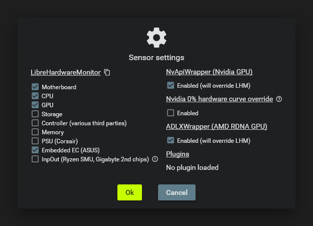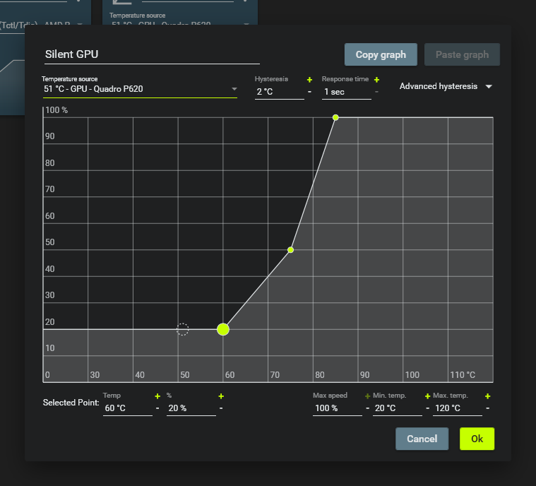 • Use the “+” button to create a new fan curve with different sensor. For example, select GPU temperature sensor.
