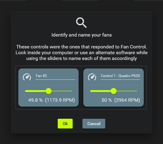 • Rename the Fans and Click Ok to next.