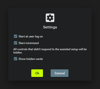 • Select “Start at user log on” and “Start minimized” to enable the Fan Control when the PC start. Click Ok to finalize the setup.