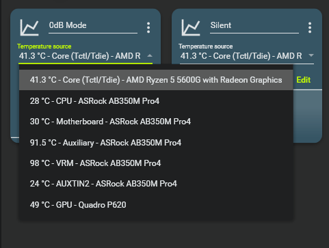 • Back to the fan curve and assign new sensor to the fan curve.