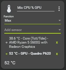 • You can rename the sensor as “Mix CPU&CPU”. Select Max function. Click “Add Sensor” to select multiple sensors.