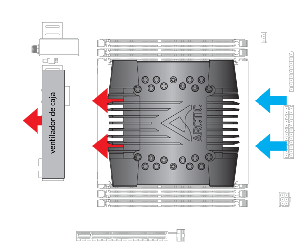 Instale el ventilador push en el lado de entrada del disipador térmico