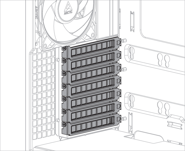 To install the Accelero GPU Mount, at least 7 PCIe slots are required. Remove the PCIe slot covers before installing the mounting kit.