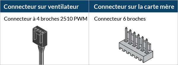 * Certaines interférences mécaniques avec les composants environnants peuvent apparaître. Le ventilateur ne sera pas contrôlable par PWM.