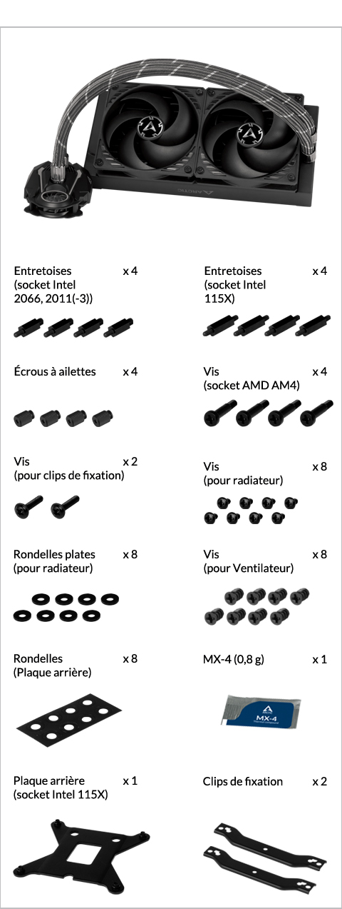 ** Si votre Liquid Freezer II n'est pas fourni avec le kit de mise à niveau LGA1851/LGA1700, veuillez nous contacter via le formulaire de contact pour obtenez le kit de mise à niveau expédié à vous. Appuyez pour accéder à l'installation.