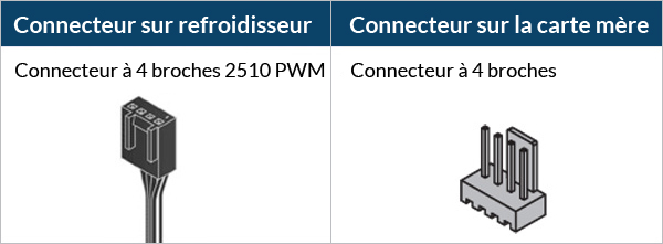 3 connecteurs à 4 broches sur la carte mère requis