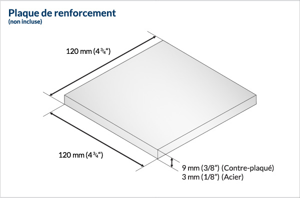 Recommandation basée sur une épaisseur de plateau supérieure à 20 mm. Les dessus de table plus minces devront peut-être être renforcés avant l'installation..