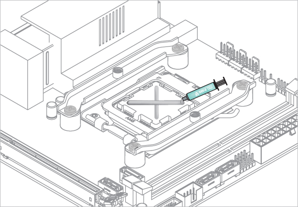 Loosely engage all 4 screws by 2 turns before tightening them in a cross pattern evenly to avoid damaging the CPU.