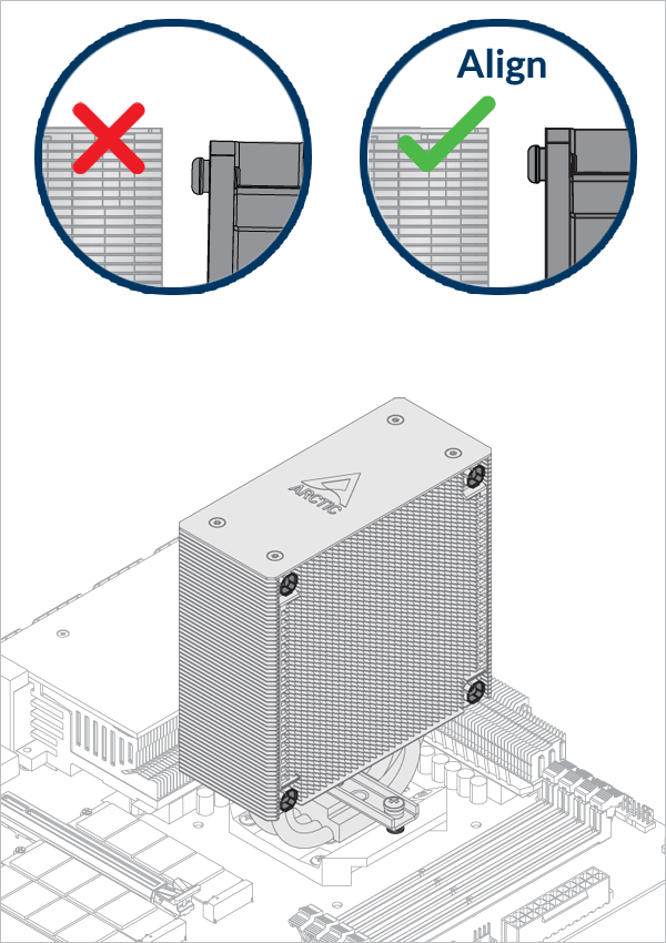 Před rovnoměrným utažením 4 šroubů křížem je volně zašroubujte o 2 otáčky, aby nedošlo k poškození procesoru.