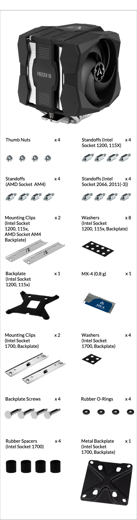 ** If your Freezer 50 does not come with the LGA 1700 upgrade kit, please contact us through the contact form to get upgrade kit shipped to you.