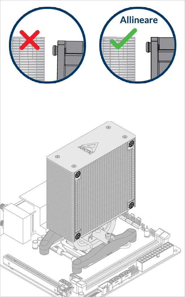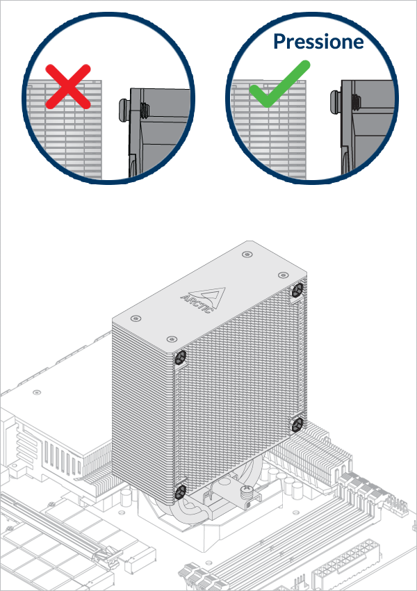 Avvitare leggermente tutte e 4 le viti di 2 giri prima di serrarle a croce in modo per evitare di danneggiare la CPU.