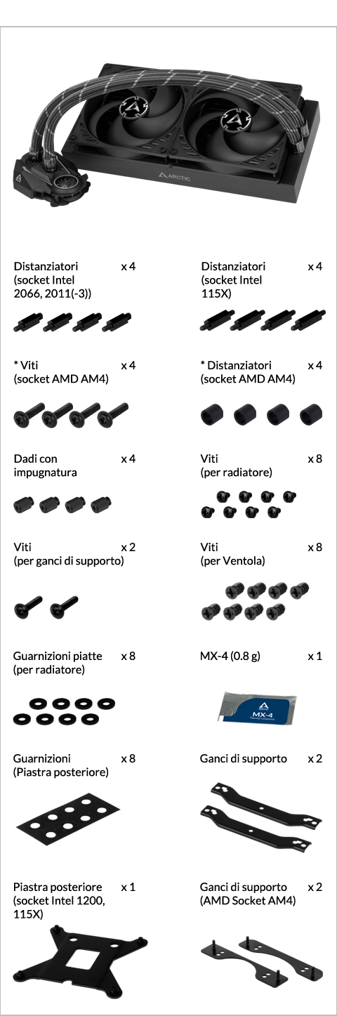 Tutti i dissipatori spediti da ARCTIC sono già compatibili con i processori LGA1851/LGA1700. I cooler acquistati dai rivenditori potrebbero essere stati consegnati senza gli accessori corrispondenti. In questo caso, contattare il nostro servizio clienti.