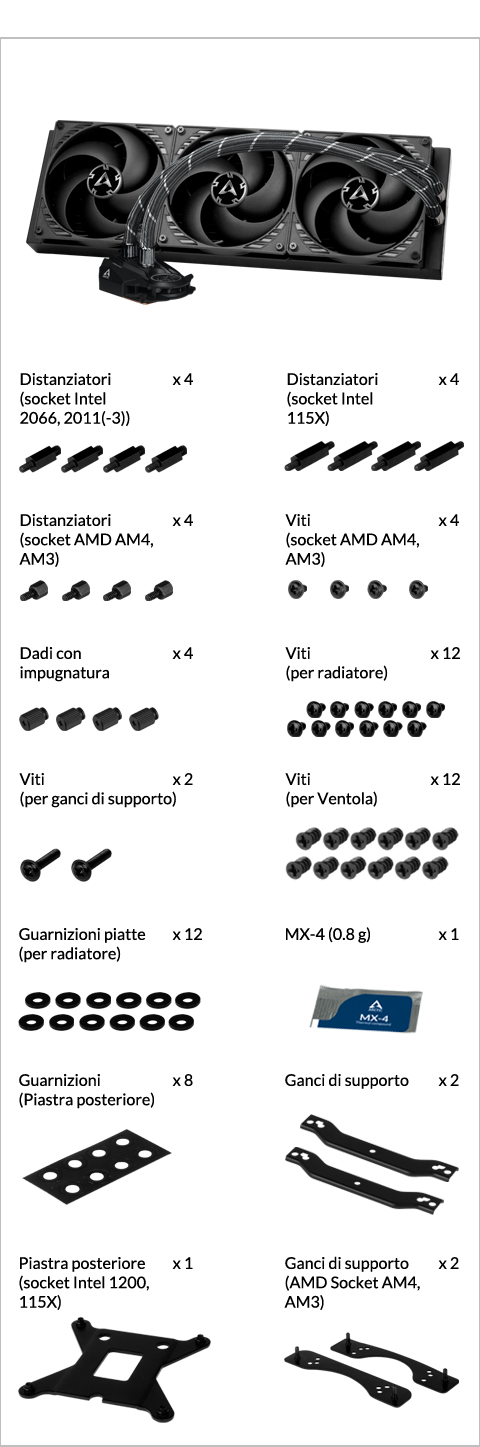 Tutti i dissipatori spediti da ARCTIC sono già compatibili con i processori LGA1851/LGA1700. I cooler acquistati dai rivenditori potrebbero essere stati consegnati senza gli accessori corrispondenti. In questo caso, contattare il nostro servizio clienti.