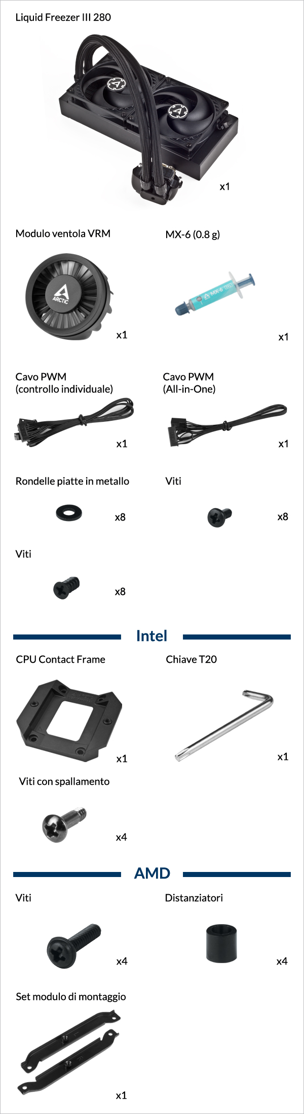 Cavo PWM a connettore singolo per il controllo simultaneo della velocità della pompa, del VRM e della ventola del radiatore, nonché per il monitoraggio della velocità della pompa.