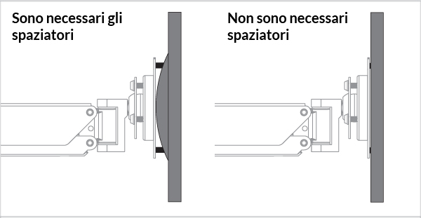 Gli spaziatori sono usati per riempire il vuoto tra la staffa di montaggio e i fori, se presenti.