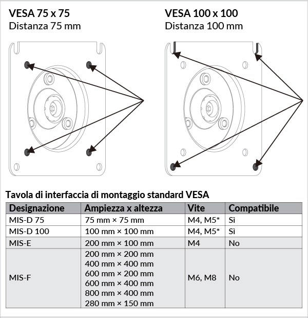 Se sono necessarie viti M5, si prega di contattare il nostro servizio clienti per ottenerle gratuitamente.