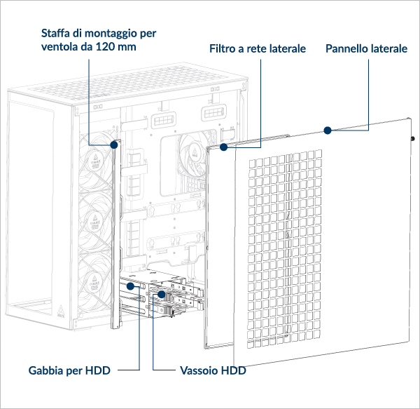 Supporta 2 ventole da 120 mm nella parte posteriore