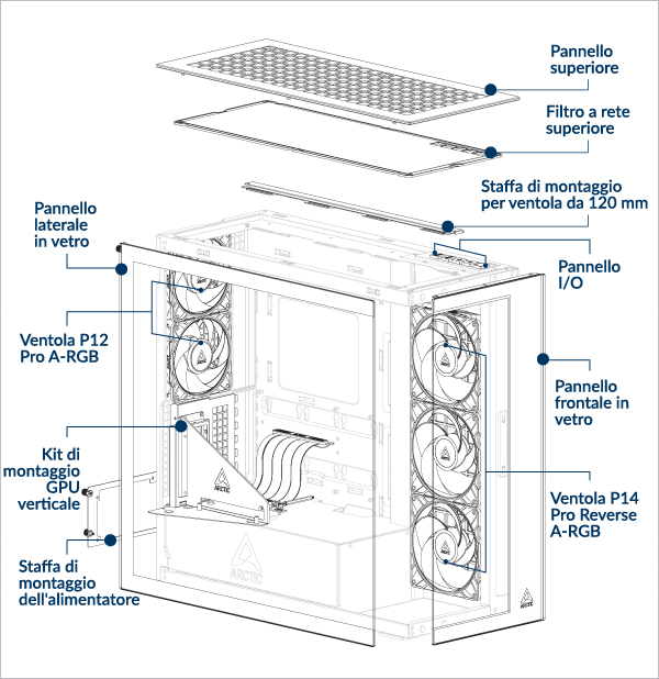 Se si utilizza un sistema di raffreddamento a liquido ARCTIC, consultare questa pagina per ulteriori suggerimenti sull'installazione: [Refrigeratori ad acqua ARCTIC AIO - Manuale utente]