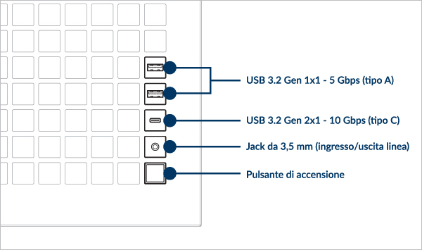 Supporta fino a un massimo di 6 SSD da 2,5" o 4 SSD da 2,5" + 2 HDD da 3,5"