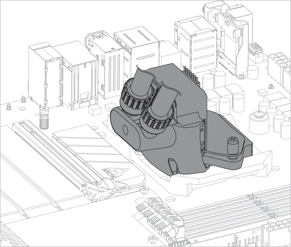 取り付け時に、Liquid Freezer III を 180 度回転させて、チューブが M.2 ヒートシンクの邪魔にならないようにしてください。