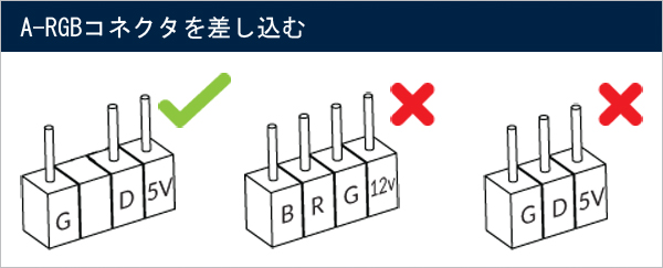 マザーボード上の3ピンA-RGBコネクタに接続します。
