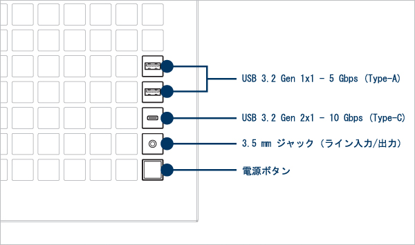 最大 6 台の 2.5 インチ SSD または 4 台の 2.5 インチ SSD + 2 台の 3.5 インチ HDD をサポート