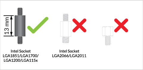 If you have received a product including the LGA1851/LGA1700 upgrade kit. Be careful to use correct standoffs with the correct backplate. Using wrong standoff may lead to malfunction or even damage motherboard.