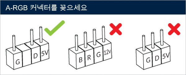 마더보드의 3핀 A-RGB 커넥터에 연결하세요.