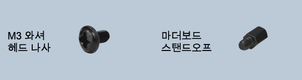 Mini-ITX 마더보드를 설치하려면 M3 와셔 헤드 나사 4개가 필요합니다.