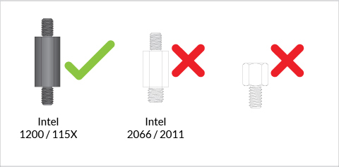 If you have received a product including the LGA1851/LGA1700 upgrade kit. Be careful to use correct standoffs with the correct backplate. Using wrong standoff may lead to malfunction or even damage motherboard.