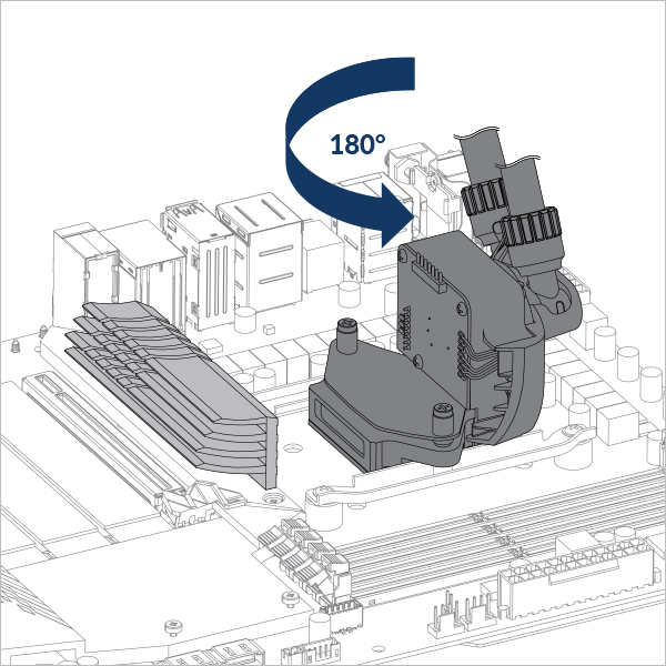 On a few motherboards, the M.2 heatsink on the south side of the CPU socket may interfere with the Liquid Freezer III.