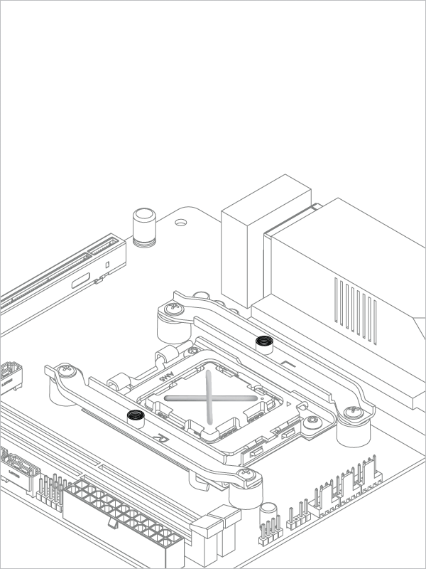 Kontaktní rám CPU je vyroben tak, aby byl kompatibilní s procesory LGA1851 i LGA1700, výběrem níže zobrazíte osazení vašeho CPU.