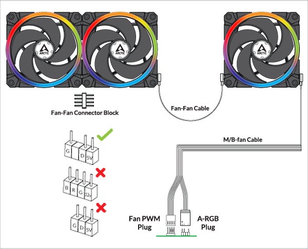 You can daisy chain up to 5 fans on each of the port of the ARCTIC ARGB Controller.