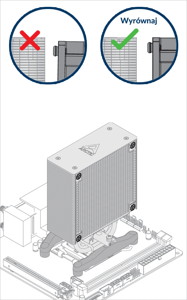 Luźno dokręć wszystkie 4 śruby o 2 obroty, a następnie dokręć je równomiernie na krzyż, aby uniknąć uszkodzenia procesora.